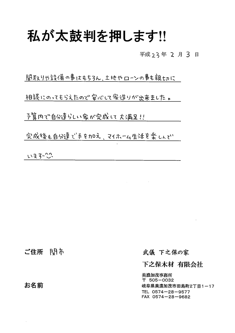 美濃市のお客様の声